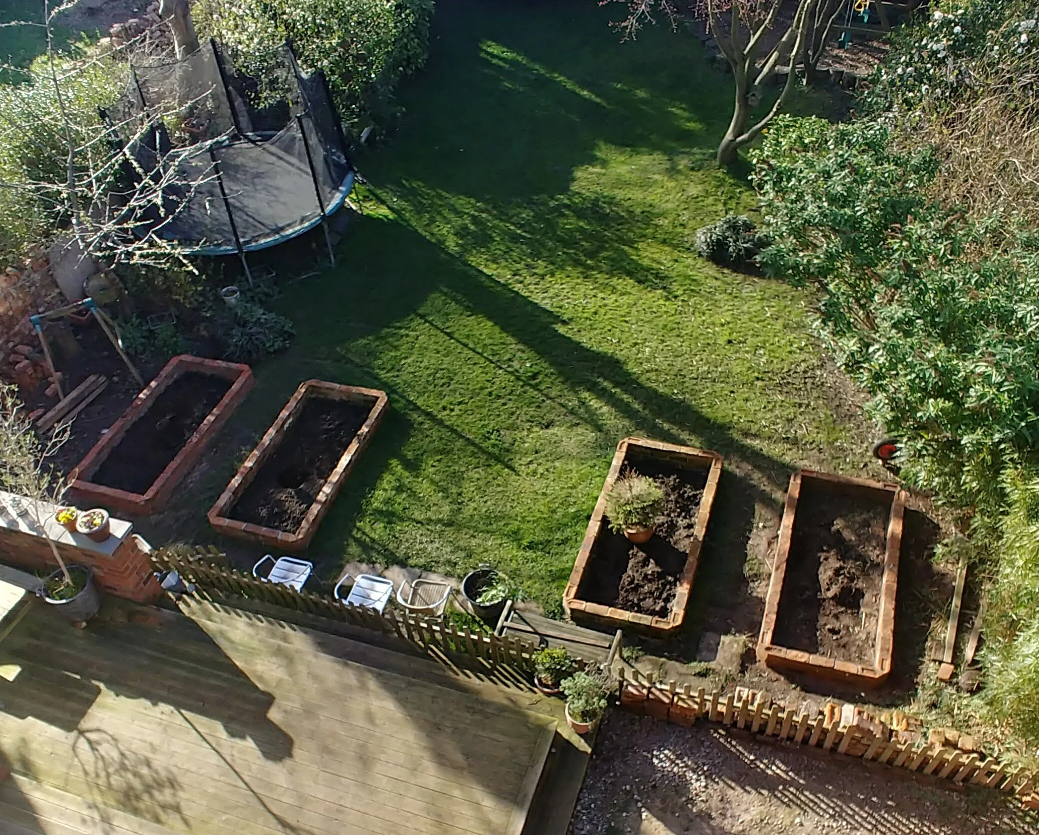We filled the raised beds with two tonnes of topsoil and compost, and I started planting.