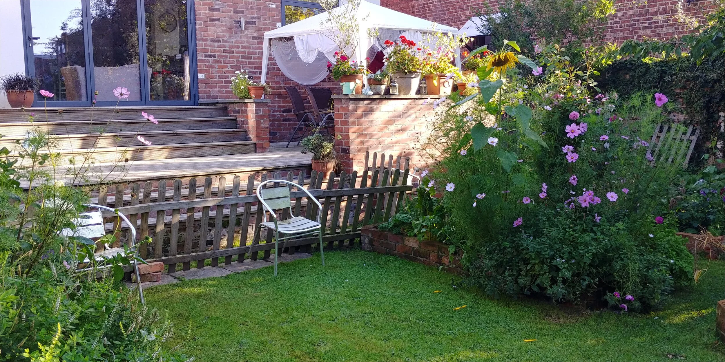 We also, at our neighbour’s request, extended the garden wall between our two semi-detached houses, and installed a slatted fence along the top.